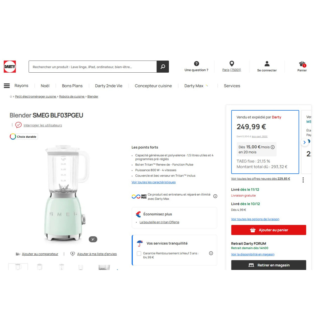 * Programmes préréglés        4 (Smoothie, Green Smoothie, Glace pilée, Auto nettoyage)