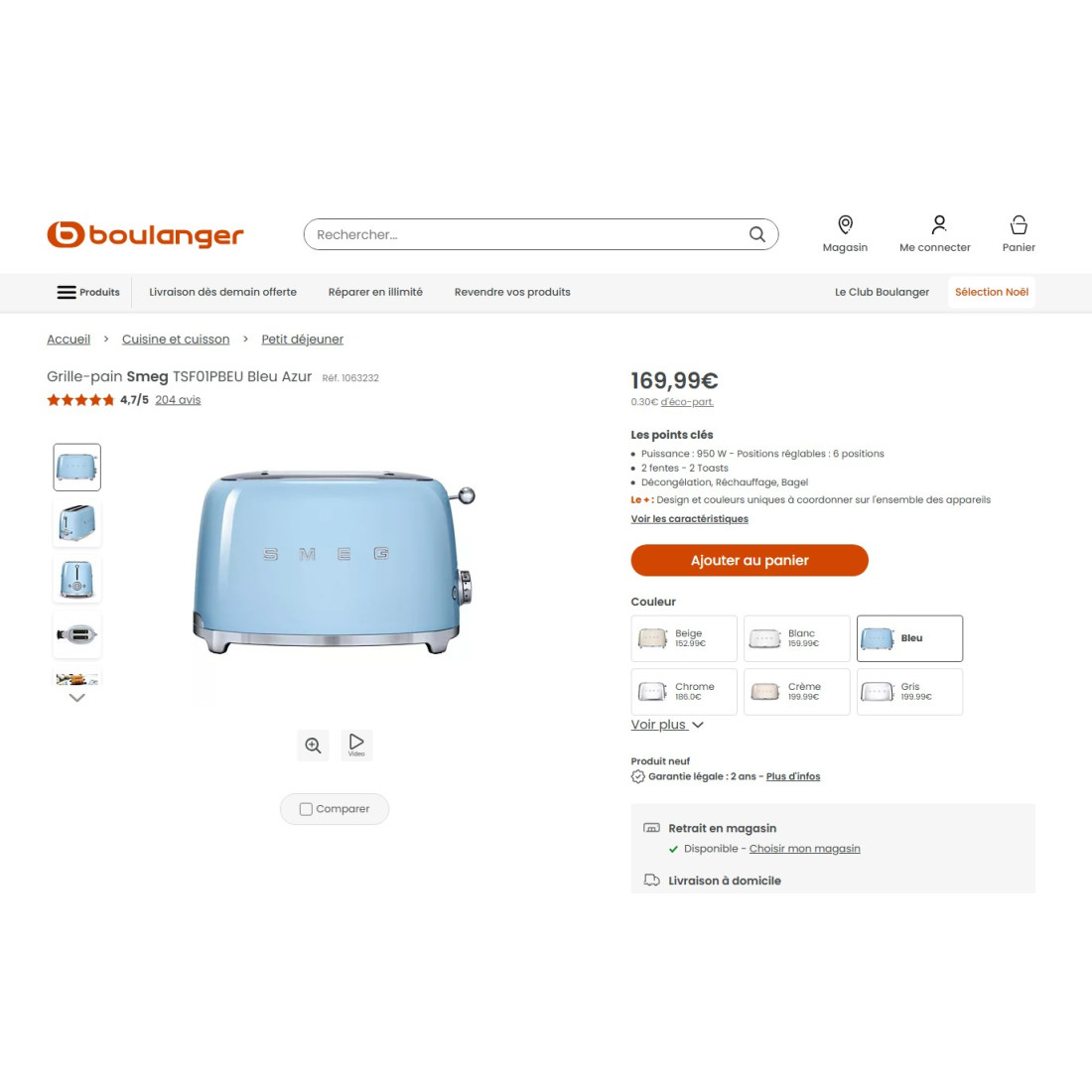 Toaster / Grille-pain 2 tranches RETRO Années 50 SMEG TSF01