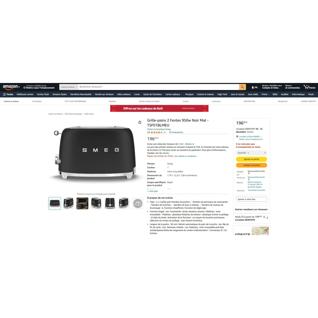 Toaster / Grille-pain 2 tranches RETRO Années 50 SMEG TSF01