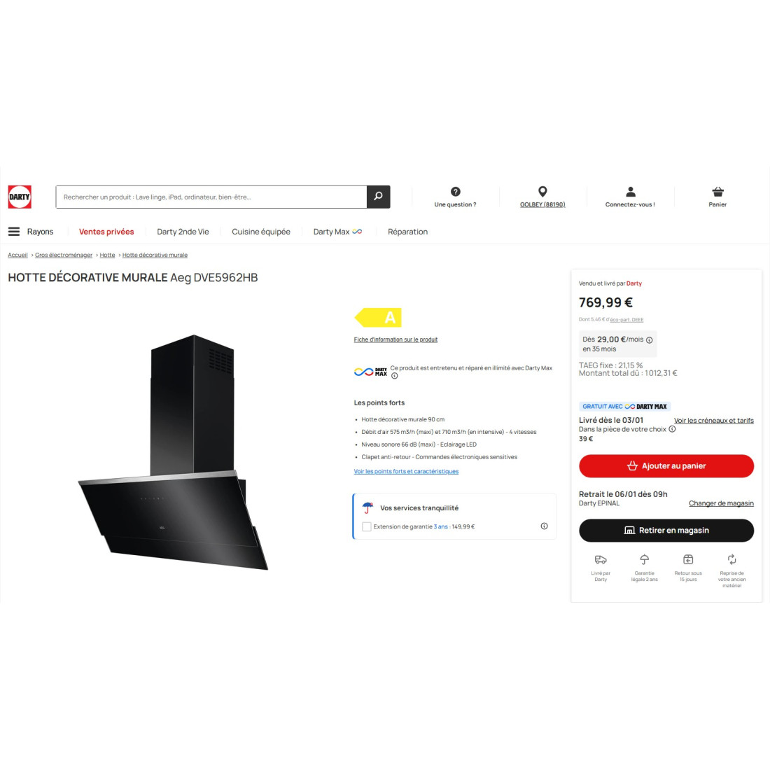* Largeur de hotte 90 cm