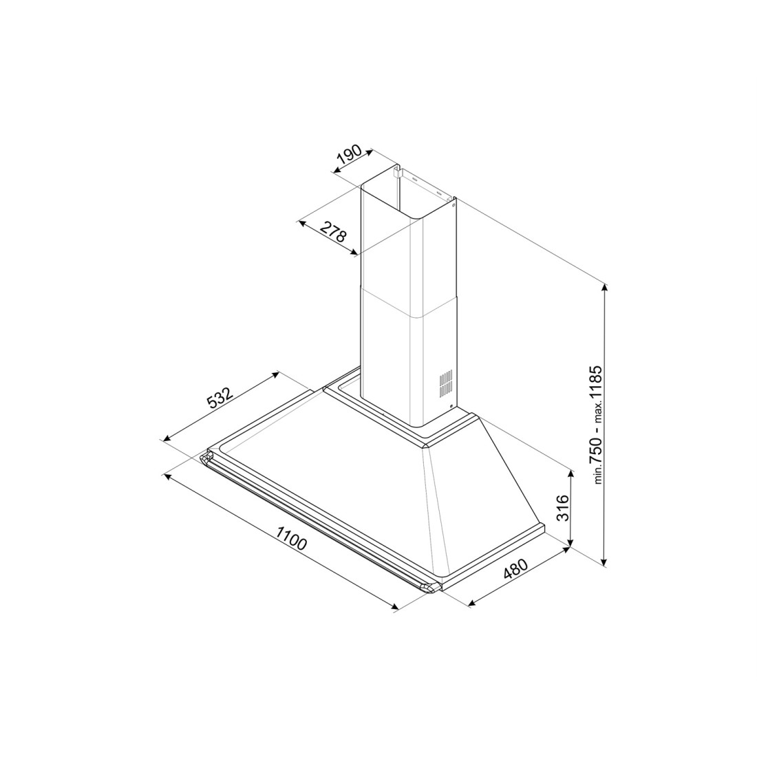 * Distance minimale d'installation au dessus d'une table de cuisson gaz       75 cm