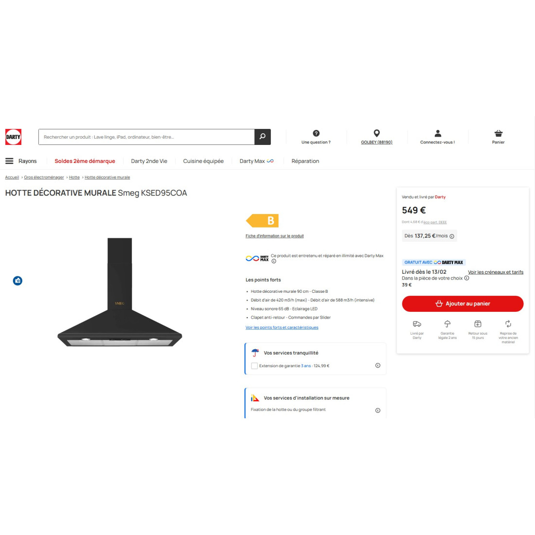 * Distance minimale d'installation au dessus d'une table de cuisson électrique 65 cm