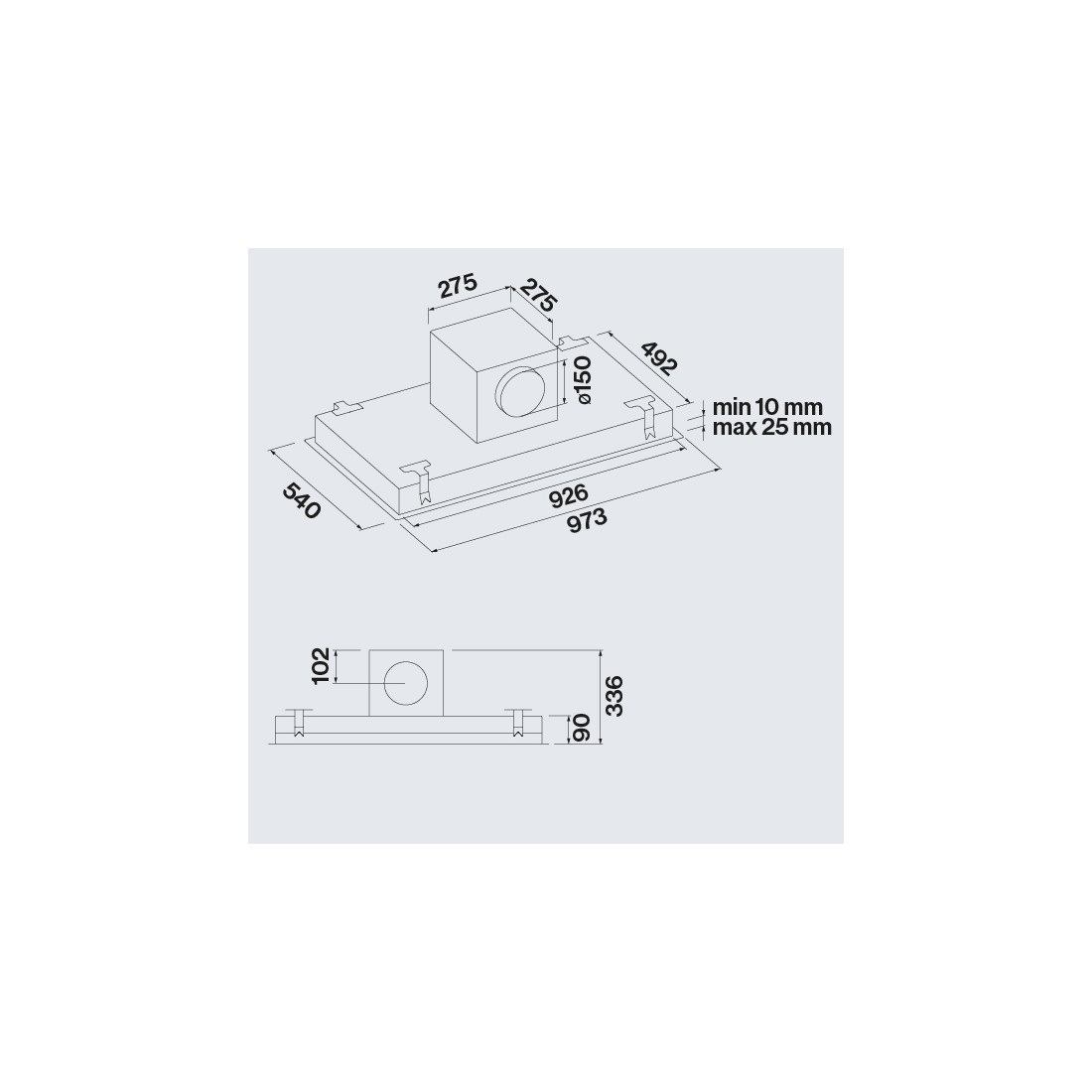 * Moteur extra plat orientable à 360°à installation sur corps de la hotte