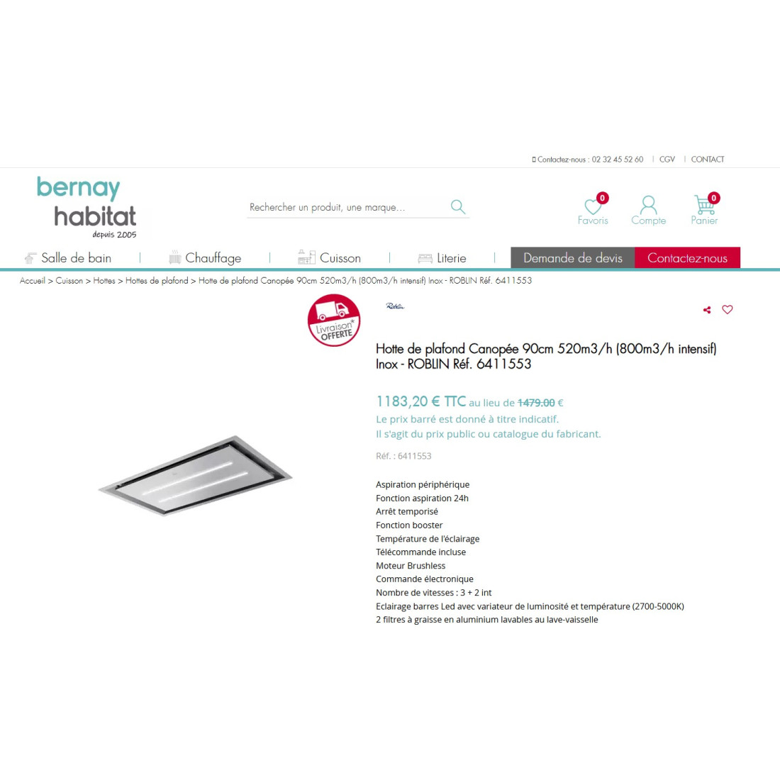 Ce kit pour moteur déporté Roblin est compatible avec les hottes plafonds CONFIDENCE, AQUA, NATURE, REFLET, HIGH CONFIDENCE, CANOPEE