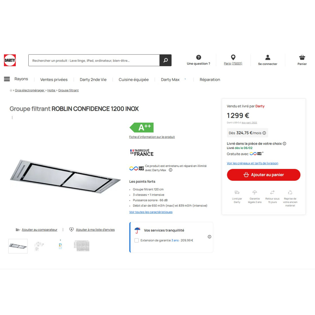 Hotte plafond ROBLIN CONFIDENCE 1200