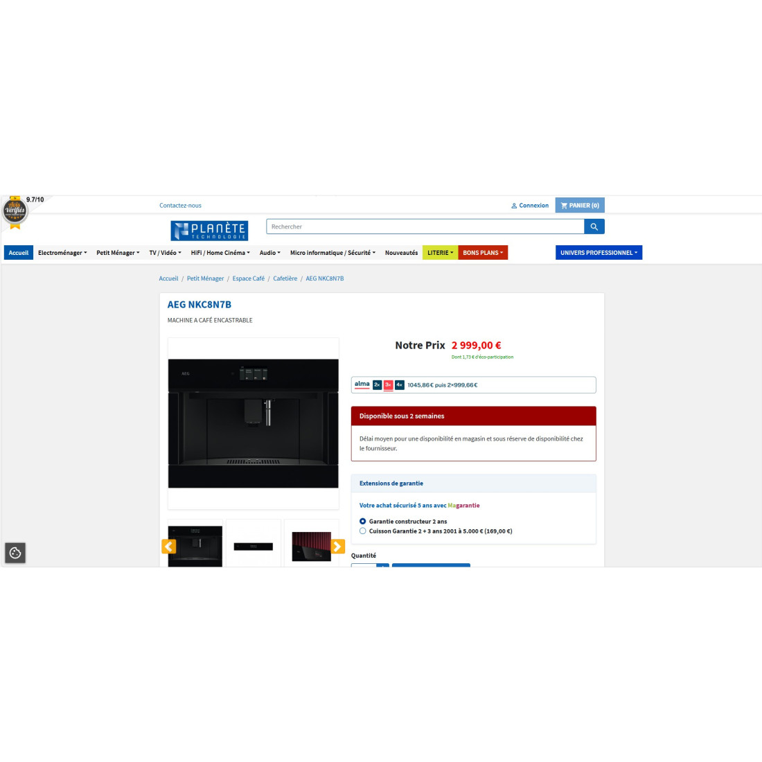 * Programmes automatiques : Cafè Crème, Caffe Americano, Caffe Latte, Caffe Macchiato, Cappuccino, Cappuccino Plus, Espresso, Espresso Lungo, Espresso Macchiato, Flat White, Hot Water, Jug, Latte Macchiato, Long Coffee, Milk, Ristretto, Steam