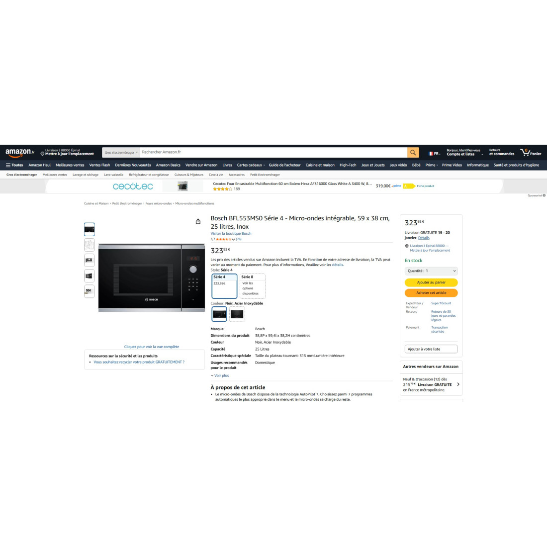 * Dimensions de la cavité 32.8 cm x 36.9 cm x 20.8 cm