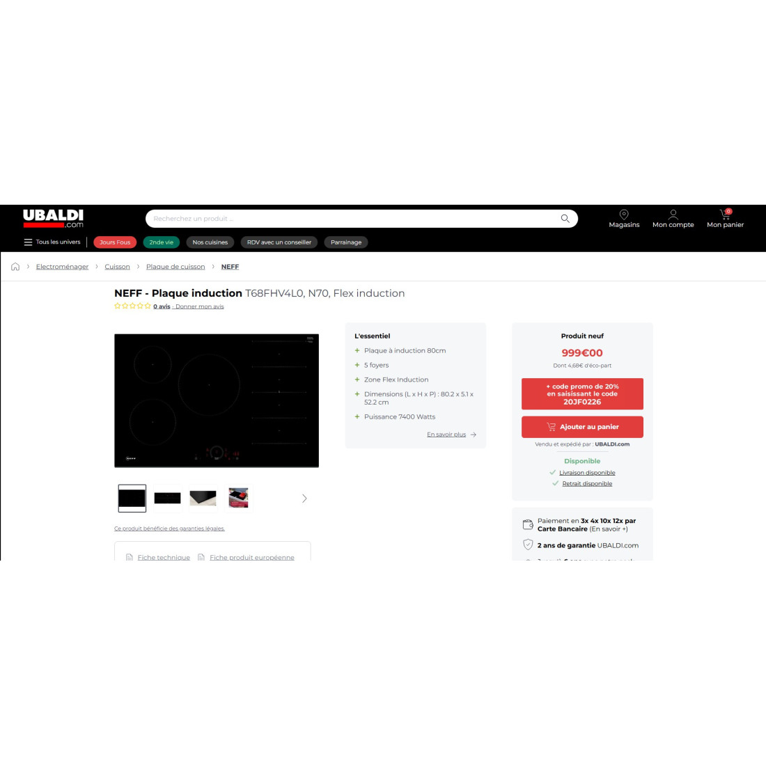 * Type de Produit Table de cuisson à induction - 5 zones de cuisson dont 1 zone Flex Induction