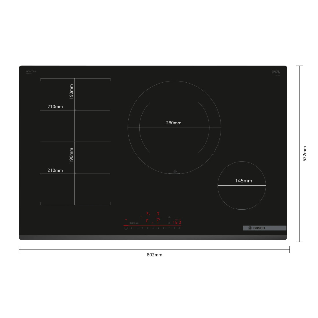 - 1 x induction arrière à gauche - 190 x 210 mm - 2500/3700 W avec fonction booster