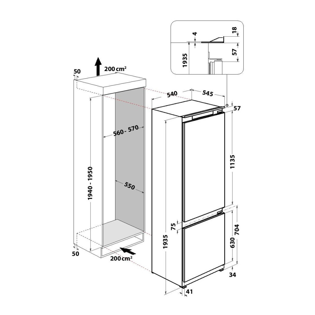 * Profondeur minimum 56 cm