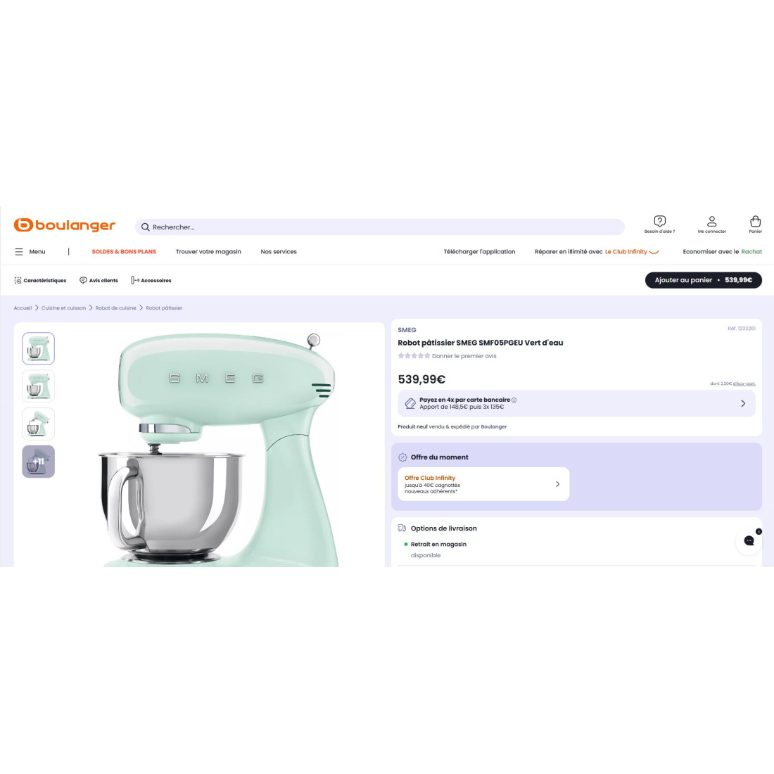 Robot pâtissier sur socle RETRO Années 50 SMEG SMF05